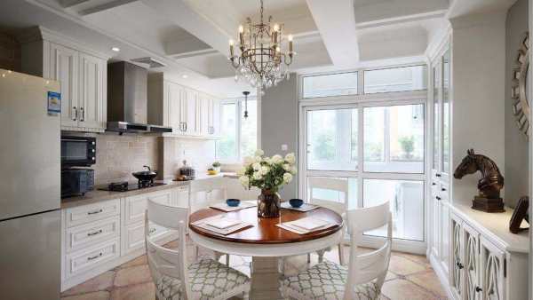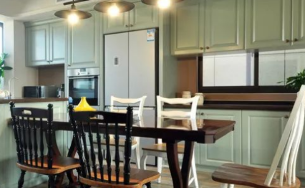 厨餐一体化就是把厨房和餐厅结合在一起,这样的设计可以节省很多空间,在吃饭的时候也会非常方便。在设计的时候要注意的地方有很多,而餐厅的家具摆放就是其中之一。厨房最大的特点就是油烟多,这些油烟会给厨房带来很多污垢。家里在清洗油烟机的时候,会特别有感觉。当我们把厨餐一体化之后,餐厅的家具自然就要挪到厨房。厨房的油烟如果落到桌子上,就会加大我们的家务难度。在摆放家具的时候一定要注意,不要把家具靠厨电太近。