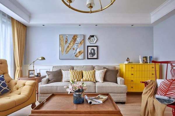 客厅选择沙发的时候,不但要看尺寸和材质,还要看沙发的颜色,选购沙发时要让它与墙面形成一个强烈的颜色反差,这样看起来更有存在感,最简单的搭配方式就是浅色的墙面配深色的沙发。沙发与地面颜色搭配,则可以按冷暖互补或者冷暖统一来选择,这样会营造出更和谐的视觉效果。