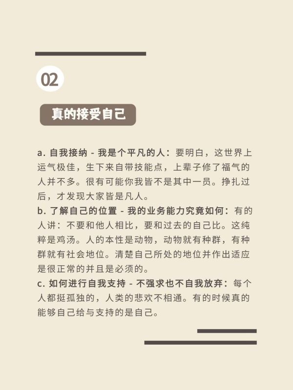 如果成功,你就得知道意味着什么。你就得更努力了,因为往后会有更多现实问题摆在你们面前,社会很残酷,但也有希望。慢慢地,每次的生离死别,都会让你成长一次,你要开始认真规划三年五年后要干什么,虽然世事难料,不要因为钱、也不要因为我只能做这些的想法而去做自己讨厌做的事,因为这会让你抑郁,你会想逃掉,甚至想自我了断,最后兜兜转转才发现,敞开心扉,做自己,要做最真实的自己才好。
