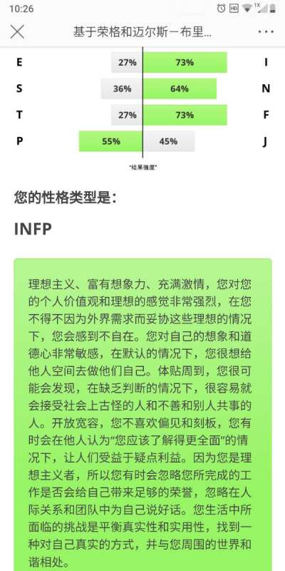 2、INFP型人格最乐于做那些符合自己价值观的事情。然而,只要愿意稍微转换一下视角,把正在从事的并不那么有趣的事情看作为别人服务的工作,这种人就会为这份工作尽心尽力、在所不辞。